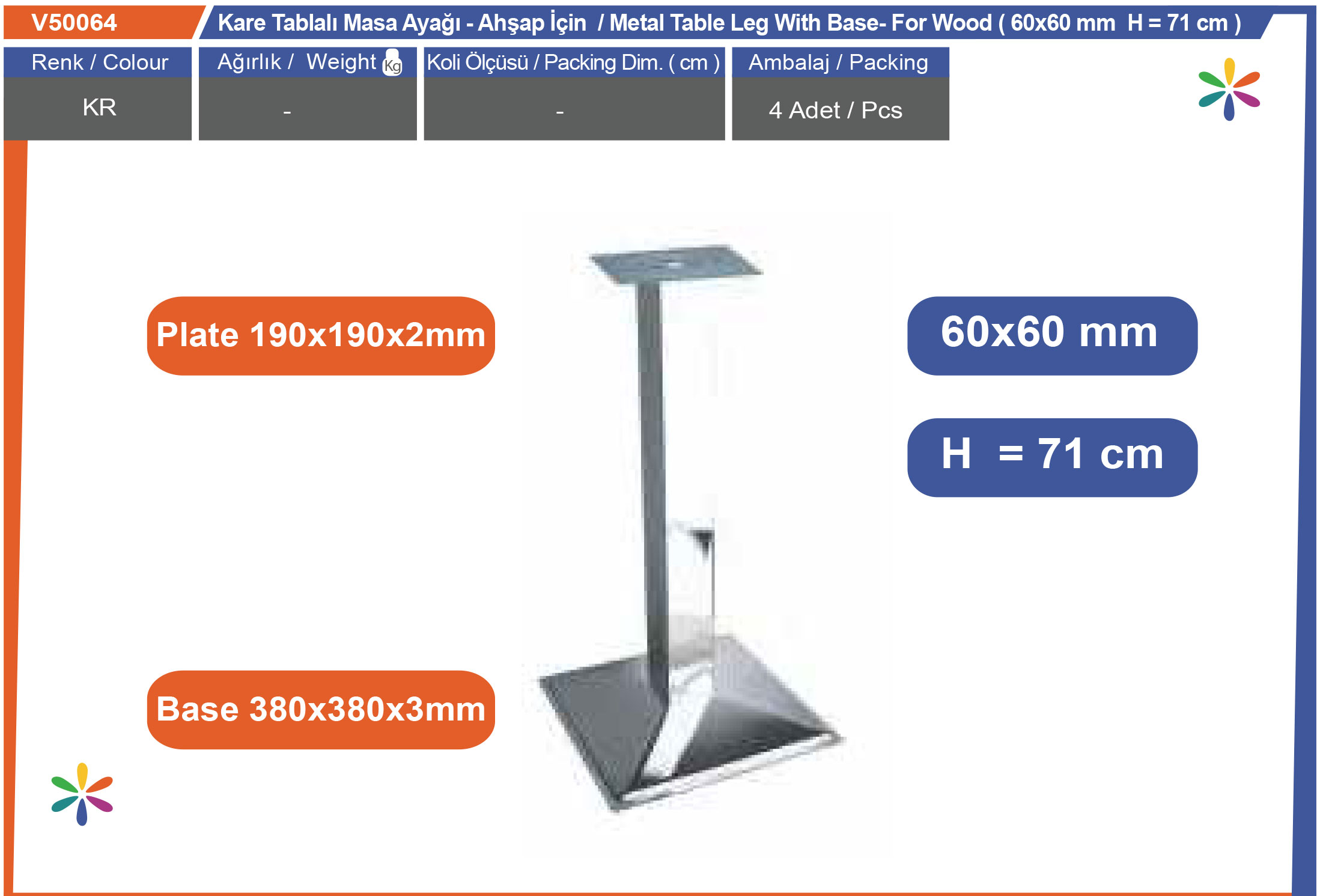 60X60 KARE TABLALI MASA AYAĞI - AHŞAP İÇİN - 71CM