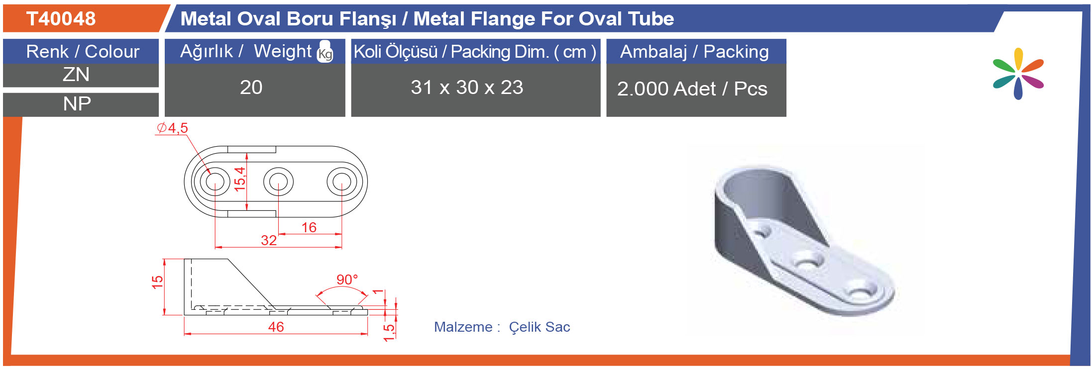 METAL OVAL BORU FLANŞI 15x30MM NİKEL